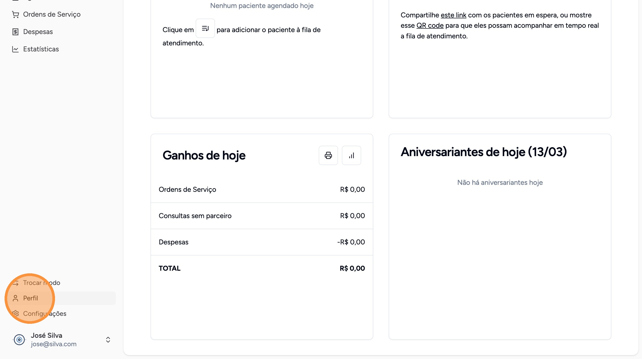 Personalize sua clínica fazendo upload da sua logomarca clicando em "Logomarca"