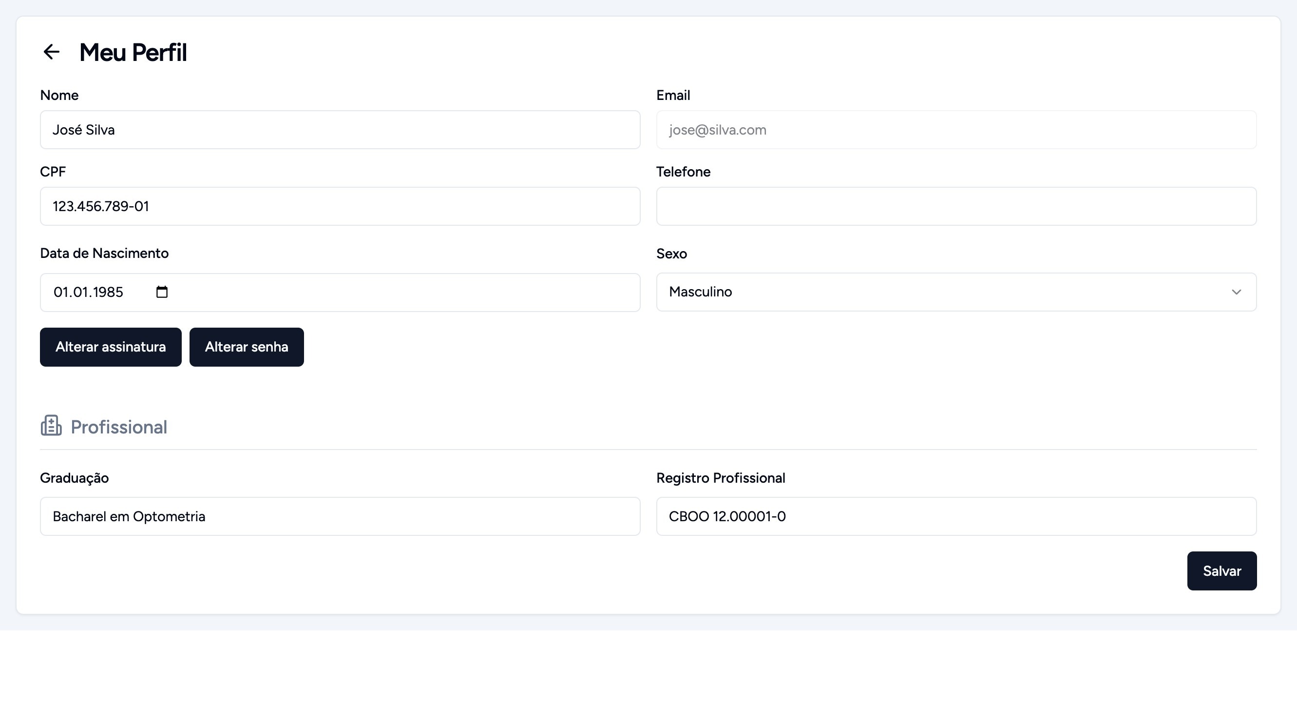 - Preencha seus dados (Se for atendente, não preencha a seção "Profissional") e clique em salvar no canto inferior direito da página