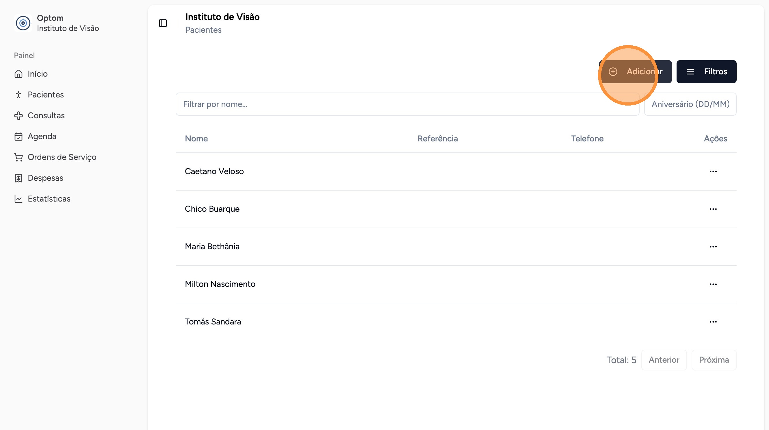 Caso o paciente não tenha sido cadastrado, clique em "Adicionar"